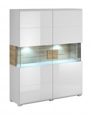 Die Vitrine Toledo mit den Maßen 122 x 39 x 152 cm ist aus MDF-Platte gefertigt und wird mit ihrem modernen Design das Aussehen Ihres Wohnraums in ein völlig zeitgemäßes und trendiges Wohnzimmer verwandeln, das Sie stolz in Ihrem Wohnraum zur Schau stellen werden. Die elegante weiße Farbe des hochglänzenden Korpus in Kombination mit der Nuance von San Remo Eiche und LED-Beleuchtung (gegen Aufpreis) ist eine gewinnende Kombination, die sich besonders in den Abendstunden in einer angenehmen Atmosphäre mit mäßiger Beleuchtung hervorheben wird.